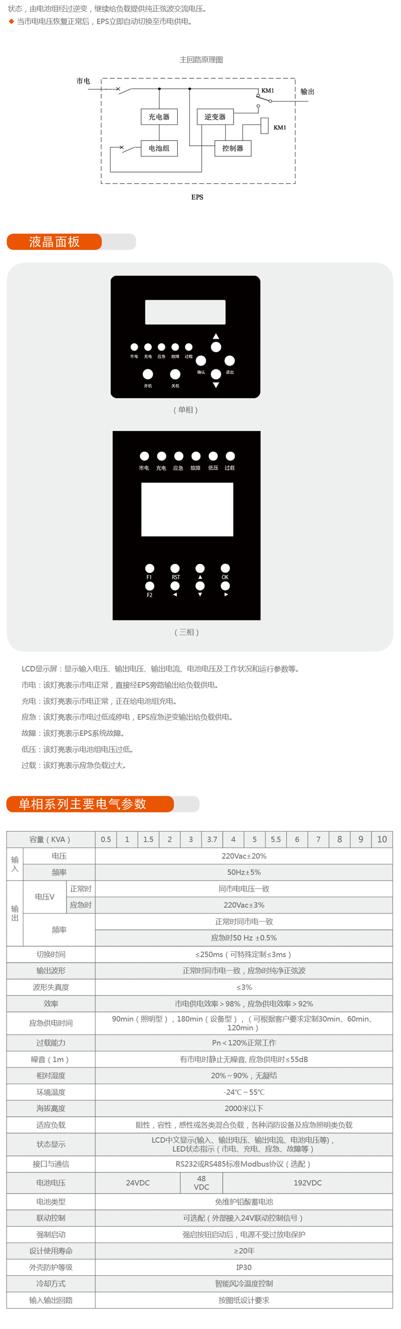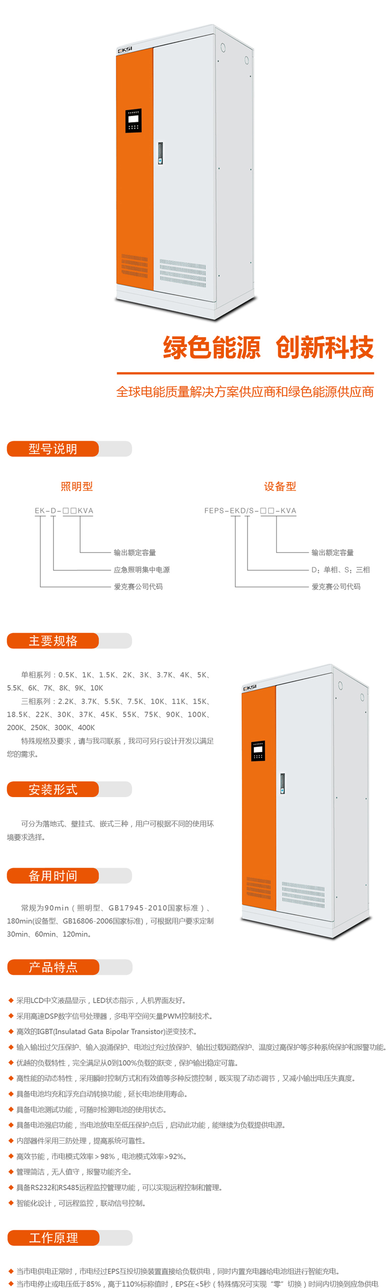 EPS:在電網(wǎng)正常時處于睡眠狀態(tài),耗電不足0.1%,無電網(wǎng)供電時,其效率92%以上